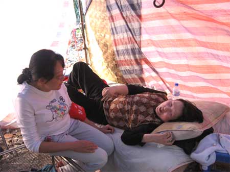 5.12大地震期间到临时搭建的地震棚里看望残疾人